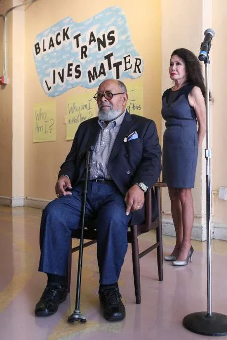 Reverend Cecil Williams and Jan Mirikitani listen as clients discuss the positive impact that Glide Memorial Church has had on their lives, in San Francisco, California on Thursday, September 17, 2015. Jan Mirikitani will be receiving a Community Leadership Award from the San Francisco Foundation at Bay Area Bold.